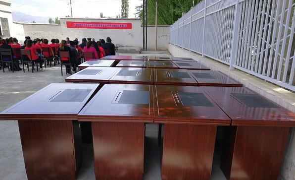 清风网讯(拜城县水利局: 李育霖)为更好的提升基层组织的战斗力,改善基层办公条件,拜城县水利局驻老虎台乡开普台尔哈纳村工作队积极和派出单位沟通。拜城县水利局党组高度重视,积极对接爱心企业。5月16日,拜城县老虎台乡开普台尔哈纳村文化广场举行爱心企业捐赠办公桌椅仪式,此次捐赠共计16套办公桌椅,共计价值一万余元。