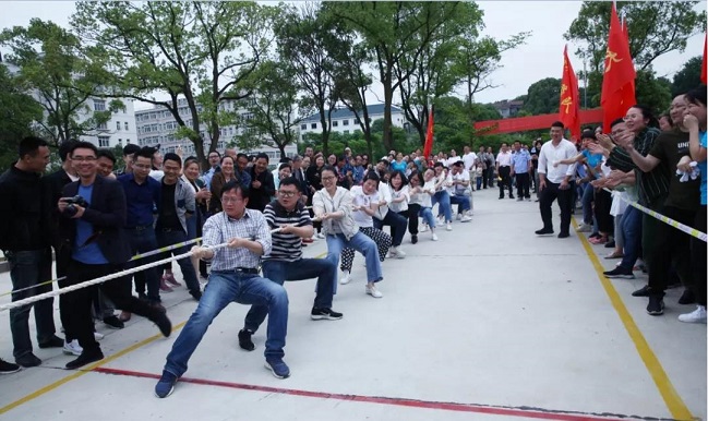 工会主席李三玉宣读《关于表彰拔河比赛获奖队伍的通报》
