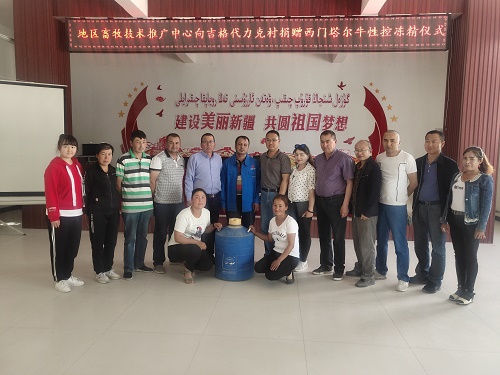 为大力支持本村贫困户发展家庭养牛业,加快优良西门塔尔牛改良力度,5月17日,地区畜牧技术推广中心副主任推广研究员张西顺等一行来拜城县温巴什乡吉格代力克村,向村委会捐赠价值2万元的优质西门塔尔牛性控冻精100枚。