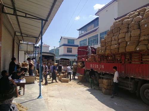 5月20日,大寺乡香料烟收购工作正式启动。工作人员按计划在德乐村大河街交售点开展定级、分类、过磅等各项收购工作,收购现场车来人往,一片繁忙,打包好的香料烟堆成了小山。