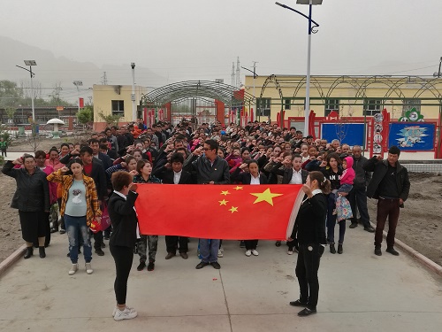 清风网讯(拜城县应急管理局: 李静媛)为了提高公民文明素质和社会文明程度,增强党员党性意识,营造维护民族团结和社会稳定的良好氛围。5月19日,拜城县应急管理局驻村工作队与村党支部协调配合,组织村民、“访惠聚”工作队队员、下沉干部共268人利用周一升国旗结束后开展“中华人民共和国公民宣誓,入党宣誓,入团宣誓”三宣誓活动。