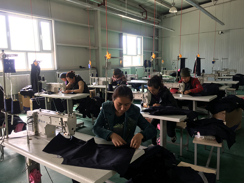 2018年9月,上级为了更好地帮助群众脱贫,解决人多地少、种植结构单一、农民增收难度大的问题,在上级单位的帮助下,在我村建立了工作区面积496.45平方米的扶贫车间,缝纫机器30台,于11月12日正式投入使用,并先后安排了30名妇女在扶贫车间工作。主要制做各类工作服,工资按月结,每个月月底发工资,多的能有1000多元,少一点儿的800元不到。剪裁、缝制、修边……想要多拿钱,就得多干活。实现赚钱顾家两不误。