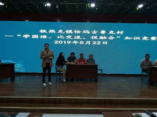 清风网讯(拜城县商务和工业信息化局:吐尼亚孜·阿不都热衣木 杨亚龙)为大力推进辖区农牧民国家通用语言教育活动,营造“学国语、讲国语、用国语”的浓厚氛围。2019年5月22日晚,恰玛古鲁克村驻村工作队和村委会举办了“学国语、比交流、促融合”国语知识竞赛活动,“访惠聚”工作队、村干部以及各族群众共计87名参加了活动。
