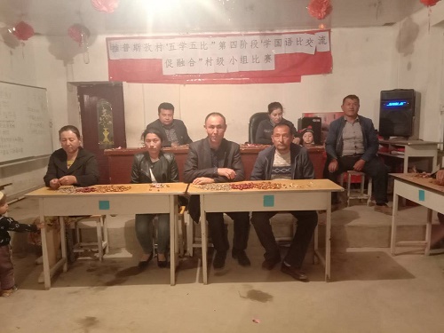 今年以来,驻黑英山乡推普斯孜村工作队协助村两委班子很抓了村级后备干部及45岁以下村民的国语学习培训,培训采取集中授课和分类指导授课的方式,由工作队员分别给村级后备干部以及45岁以下的村民进行国语强化培训,分设快(村两委班子及后备干部)、慢班(村民),每天集中现场授课1.5—2小时,并结合远程教育,强化国语口语交流,大大提高了村民的国语说、写、用的能力,对测试不合格的学员进行补课和补考,同时将学习培训测试结果与村干部的绩效工资相挂钩,极大的激发了村级后备干部学习国语的热情和积极性。