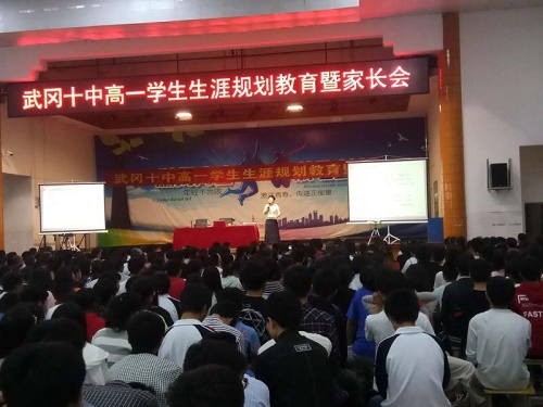 今年4月,湖南省人民政府新闻办举行新闻发布会,正式发布《湖南省深化考试招生制度改革实施方案》。湖南新高考将从2018年高一新生开始实施,2021年正式执行。高考不再是以前的文理两科,“3+1+2”模式的选科,为高中生提供了更多的选择和机遇,机遇的同时对选科有了更高的要求和挑战,自己到底选哪几科才是最理想的呢?为了顺应新高考的需要,能让孩子们更好的进行选科,武冈市十中特举办本次有家长一起参加的生涯规划大会。