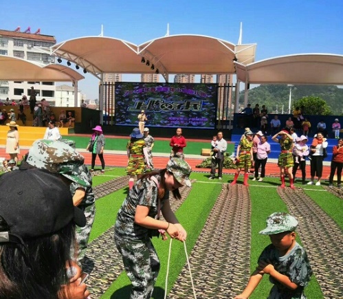 《上阵父子兵》活动分为全体入场、列队、升国旗、活动宣誓、教师开场舞、游戏等环节。通过开展此次活动,加强了家长与子女之间的情感交流,让更多的家长们关注到孩子的健康教育,增强孩子的体质,同时增加孩子之间、家长之间、师生之间、家园之间的沟通机会。