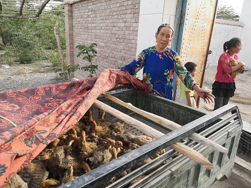 贫困户比拉力·吐尔逊开心地说:“我们家院子大,以前想过庭院养殖,想养一些牛羊等大牲畜,但是由于没有资金,也养不动,因此就没有养。现在好了,工作队想办法,给我们送来了鸡苗,养鸡对我们来说是投资小见效快又不太费力的好项目,这些扶贫鸡能为我们带来收入,真是太感谢工作队了!”