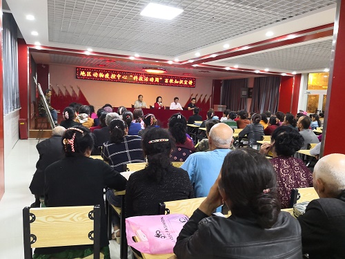 清风网讯(阿克苏地区畜牧兽医局驻村工作队:李佳)5月23日晚,阿克苏地区动物疫病控制诊断中心书记古力拜克然木·阿吾提带领下沉干部来到单位驻村点,看望驻村干部之余,为乌堂村村民开展了一堂生动的动物防疫知识讲座,400余名村民聆听了讲座。