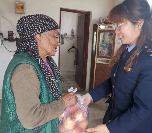 清风网讯(拜城县市场监督管理局驻村工作队:阿布都里艾则孜·依斯坎地尔)“她叫琚新慧,拜城县市场监督管理局的人,我们2017年年初在村委会“扶贫干部结对子”会上相识的,村委会给我定好她是我的扶贫帮扶干部,从那以后,她一般每周一次,工作忙的时候每两周一次过来,看望我,问我的身体状况,生产生活情况,困难诉求情况,家庭增加收入情况等等并给我定下一步的增加收入之路,她每次过来给我买一大堆东西来慰问我,面粉清油啊,瓜果呀等等,让我最感动的是,今年二月份我突然犯并,想去医院身上也没有多少钱,左邻右舍也没办法借钱,而且外面也很冷,交通也不方便,我正头疼的时候我的“及时雨”亲戚居新慧来了并了解情况后当场给了200块钱现金安慰我并开自己的车把我送上县医院去了,当时我特别感动。。。”拜城县康其乡康其村的贫困户再娜皮汗·肉孜合不拢嘴地说道。