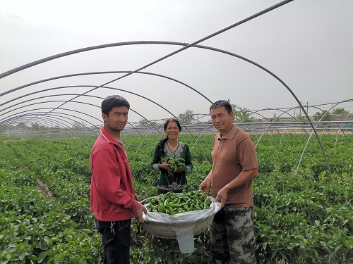 “拱棚具有‘春提早、秋延后’的作用。今年以来,工作队结合英买力村人多地少及紧邻巴扎这一实际,积极鼓励种植户在庭院及大田发展拱棚种植,由于我们在年初做了大量卓有成效的宣传动员及技术培训工作,辖区群众的种植积极性都很高,目前部分拱棚蔬菜已提高上市。拱棚种植不但满足了种植户自己的‘餐桌子’,也鼓起了他们的‘钱袋子’,可谓‘一举两得’。”村第一书记、工作队队长艾合麦提·肉孜说。