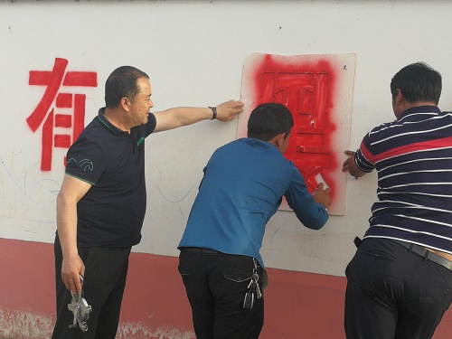 近日,阿克苏检察分院驻阿瓦提县丰收三场团结新村工作队与村干部开展了扫黑除恶宣传活动,宣传中工作队员与村干部们分工负责,测位置、扶模具、喷油漆,大家忙的不亦乐乎。