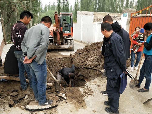 近日,工作队在入户走访中了解到辖区自来水管有三处损坏,导致群众家中无生活用水,造成群众生活饮水困难。得知该事后,驻村工作队立即联系县水利局相关施工单位工作人员和机械设备,经过工作队和水利局的工作人员的共同努力,挖坑埋管,近6个小时,终于在傍晚前将损坏的三处管道顺利修复,使群众自来水正常通水。