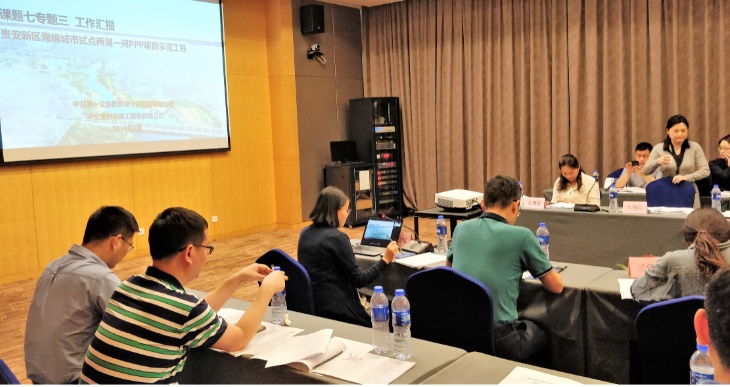 在工作会上,两湖一河PPP项目负责具体实施的《海绵城市关键技术研究与应用》子课题《贵安新区海绵城市试点两湖一河PPP项目示范工程》作“压轴”汇报。汇报中,除了围绕研究大纲要求对两湖一河PPP项目示范工程中的海绵城市构建途径及控制目标、海绵城市关键技术应用、海绵城市效果评估等主要研究内容进行了详细阐述,还重点突出来了项目已获得的主要技术成果,和分享了示范工程创建的一些心得体会。