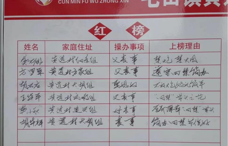“"红黑榜"对群众的引导作用非常明显,一经推出,就再次掀起了婚事新办、丧事简办、余事不办的新风尚,少数人的不良风气也得到明显改善。”该镇分管移风易俗工作的人大主席李龙波说。