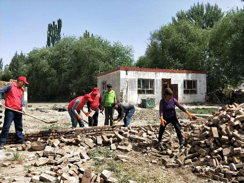 清风网讯(拜城县商务和工业信息化局 :吐尼亚孜·阿不都热衣木 杨亚龙)2019年5月28日,恰玛古鲁克村3组贫困户阿不都马里克·吐来克想盖新房子,但是由于阿不都马里克劳动力不足,无法完成此项工程,当拜城县驻铁热克镇恰玛古鲁克村的工作队和村“两委”得知这一消息后,工作队成员、村干部自发组成了“小红帽”志愿者服务队帮其进行新房建设工作。盖房帮扶现场一片热火朝天的景象,不一会儿热心的村民邻居也都过来帮忙了,大家不畏酷暑,有的砌墙、有的拉砖、有的拌水泥……