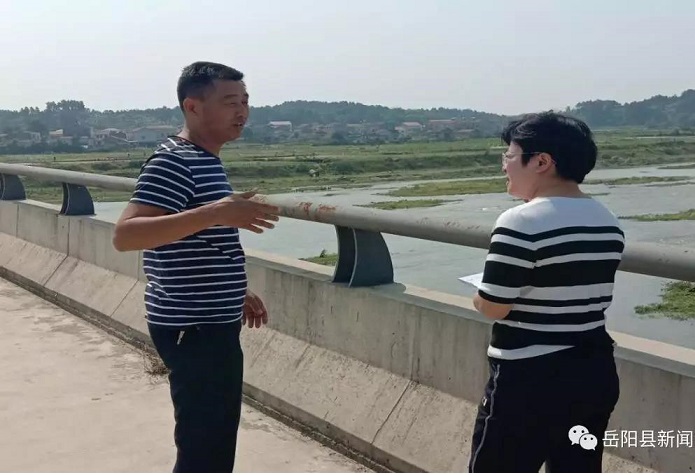 岳阳县副县长彭碧芳巡查筻口镇游港河,指导防汛备险工作