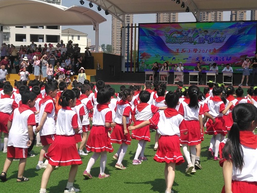 在少先队辅导员的带领下,新队员进行了庄严的入队宣誓。随后,孩子们用甜美的歌声、优美的舞姿,充分展示了自己的才艺,节日的校园成了欢乐的海洋。汇演节目精彩纷呈,各具特色,赢得了观众们的阵阵掌声。