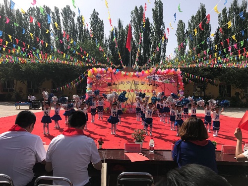 活动在庄严的国歌声中开始,来自己希望小学和中心幼儿园的同学们为大家表演节目。