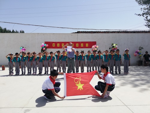 小学一、二年级的的小朋友进行了少先队员入队宣誓、行队礼,高年级的少先队员为刚入队的少先队员系红领巾活动。