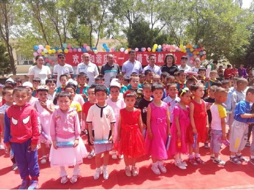活动中,拜城县驻亚吐尔乡英兰干村工作队为英兰干村小学及幼儿园全体小朋友每人赠送文具盒、铅笔、本子一套,共200份,并向小朋友们送去了节日的祝贺、向辛勤培育祖国花朵的老师、家长表示问候和感谢。