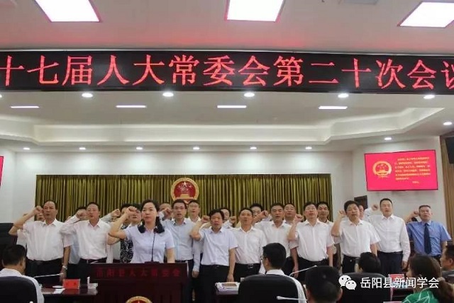 清风网岳阳讯(刘亮 许萍) 5月30日,县十七届人大常委会召开第20次会议,对本轮机构改革后县人民政府19个工作部门的主要负责人进行集中任命。县人大常委会主任汤小娥,副主任刘小良、张艳生、胡海平、易治国、许吉程出席会议,县人民政府县长曾平原,县监察委员会主任陈绍东,县人民法院院长杨水平,县人民检察院检察长钟沁列席会议。