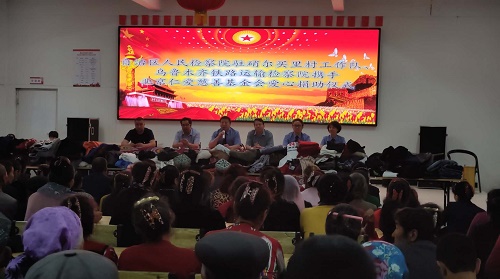 清风网讯(自治区人民检察院 : 徐飞)6月3日,自治区人民检察院驻阿克苏地区拜城县硝尔买里工作队、乌铁运输检察院携手北京仁爱慈善基金会开展了“民族团结一家亲”爱心捐赠活动,将满载着无限爱心的1000余件整洁衣物发放到全村276多户村民手中,为这里的村民送上了节日的祝福。