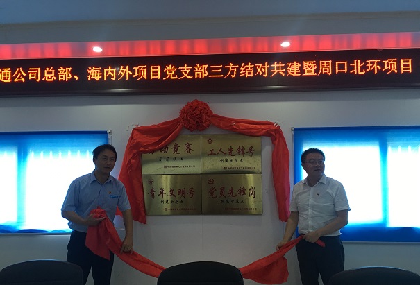 会上,王迎节宣读了“三方”党支部《联建共建实施方案》,该方案计划用两年的时间,发挥各自支部的优势,坚持引进来和走出去相结合的思路,开展互动交流,促进党建工作水平上新水平;在与会人员的共同见证下,崔文洁、陈天恩和聂旭峰分别代表所在党支部,在《联创共建目标责任书》上签名,并为此建立起“三方”海内外共享“红色驿站”网上平台。接着,周口北环项目党群“一体化”争创党员责任区、工人先锋号、青年文明号等也一并启动。
