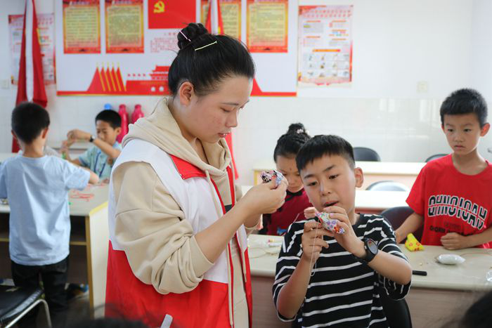 “收口的时候要这么缝,一抽就是心形的啦。”“棉花塞太多啦,都有点硬了。”6月1日一大早,梅里社区活动室人头攒动,大家一边穿针引线,一边互相探讨,一片热闹景象。
