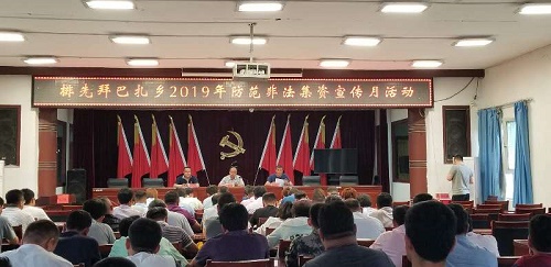 清风网讯(排先拜巴扎乡人民政府:黄素平 鲁肖肖)为进一步认清非法集资的本质和危害,提高广大群众防范意识和辨别能力。6月4日,排先拜巴扎乡组织召开2019年防范非法集资宣传月动员大会。各村第一书记、村党支部书记、机关干部180余人参加会议。