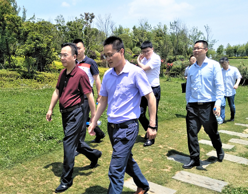 首先,蔡彬一行来到月亮湖公园一期游客服务中心观看了两湖一河PPP项目宣传片,并听取了中交四公局两湖一河PPP项目总包负责人关于工程总体规划、运作模式、设计理念等相关情况的介绍。随后,通过看展板、听汇报和实地踏勘,蔡彬一行对两湖一河PPP项目海绵城市建设、园林景观打造、特色元素植入、自然生态保护、功能分区设计、园区配套设施、开放区域管养等方面的现场实施情况有了较为直观和深入的了解。