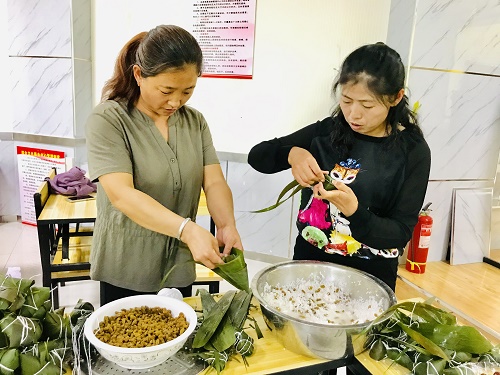 社区提前筹划,准备好食材,活动现场,桌子上摆满了粽叶、糯米、红枣、葡萄干等食材。现场的少数民族居民都是第一次包粽子,社区干部和志愿者们细心教大家怎么从卷粽叶、添糯米开始,以讲做结合的方式手把手地带着大家包粽子。在阵阵的欢声笑语中,一个个包裹着浓浓民族情谊的粽子新鲜出炉。