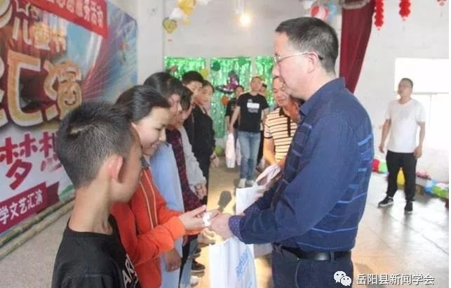 清风网岳阳讯(供稿: 岳阳县民政局办公室 通讯员:许萍)5月31日,岳阳县毛田镇相思小学喜气洋洋,岳阳县民政局携手毛田镇政府在这里开展关爱留守儿童志愿服务活动,向留守儿童捐赠节日礼品,为中兴村许永康、邓霞两位村民颁发“忠义之星”。岳阳县民政局党组书记 、局长 袁干保率全体帮扶干部、毛田镇党委副书记张鹏飞等领导出席。