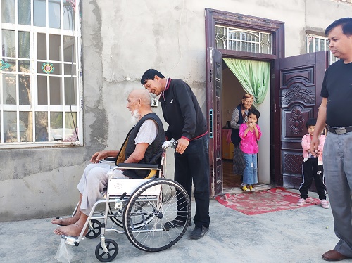 阿山·吾斯曼是英买力镇博斯坦村建档立卡贫困户,因脑溢血引发半身瘫痪,造成行动不便、长期卧床不起,老人有一个“微心愿”能拥有一辆轮椅,沙雅县住房和城乡建设局驻英买力镇博斯坦村工作队得知后为老人购买了价值600余元的轮椅1辆,帮助老人实现了自己的“微心愿”。