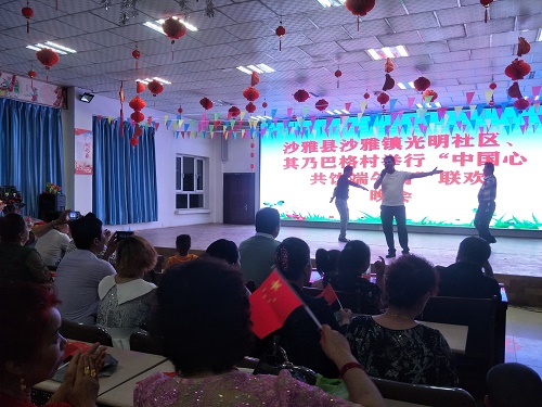 联谊会首先在所有在场的干部和居民群众齐唱红歌《我爱你中国》的歌声中拉开了帷幕,大家怀着无比感激的心情抒发着对祖国无限的热爱和赞美之情,随后,社区干部和居民上演了自编自演的各类节目,有独唱、合唱、有独舞、有集体舞,大家一边吃着水果,一边吃着粽子,一边了解着民、汉不同民族之间的过节风俗,一边笑着,脸上都挂着满满的幸福的笑容,一曲全场互动的麦西来普更是让全场洋溢在欢乐的海洋中,心中不由自主的涌动起了感恩共产党的感恩之情,老党员艾山大叔高兴的说“我们现在的生活真是太好了,今天的幸福生活都来源于一代又一代共产党人的不懈奋斗,我们的党太伟大了,我们的祖国太伟大了”。