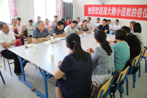 送教活动在杨柳湾镇中心学校校长谭旭同志致词中开始,湖大附小三位教学名师分别讲授一年级语文、三年级数学、四年级英语示范课,杨柳湾镇近30名教师进行了课堂观摩。