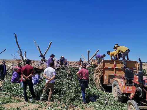 6月13日一大早,工作队协助村“两委”组织村民、志愿服务队到巴扎村十组河道开展防洪防汛工作,大家一起搬运木桩、树枝和石块等,村民们把木桩制作成三脚架后,将三脚架推向岸边固定,加以树枝、石块等形成防护堤,起到调节水量,抢险堵口和防洪护岸的作用。