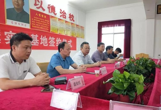 仪式第三项:请双方代表签订成立就业实习基地协议仪式并为岳阳县鹿角中学授牌