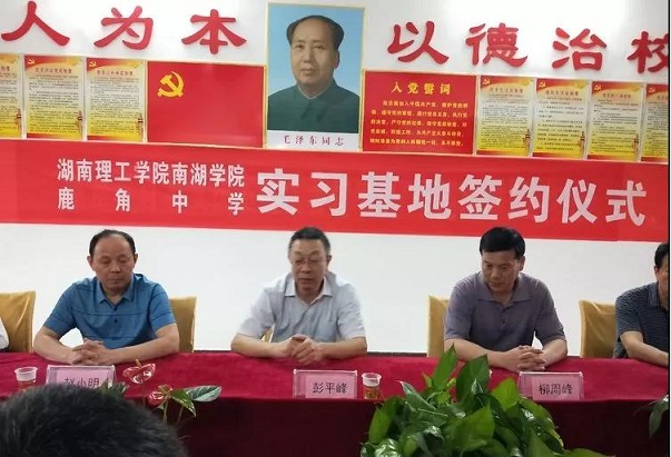 清风网岳阳讯 (晏建保 黄娜 许萍)祥风拂面、艳阳高照。 在端午佳节到来之际,我们鹿角中学在学校小会议室隆重举行湖南理工学院南湖学院毕业生实习基地签约授牌仪式。