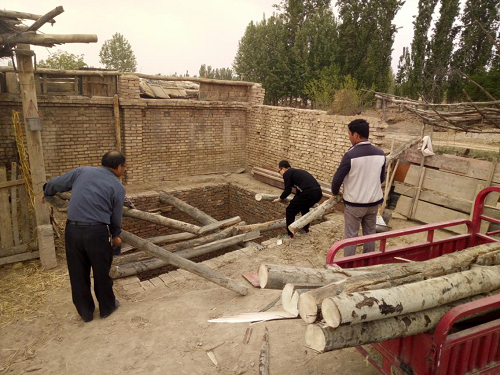 近日,拜城县委办公室驻亚吐尔乡布吉尕村工作组在入户走访中来到贫困户热合曼·买木提家中。见其正在修缮菜窖,工作组干部立即参与进去帮助农民修缮菜窖,在与群众干活的过程中既拉近了与贫困户的距离,又宣传了扶贫政策,更温暖了贫困户的心。