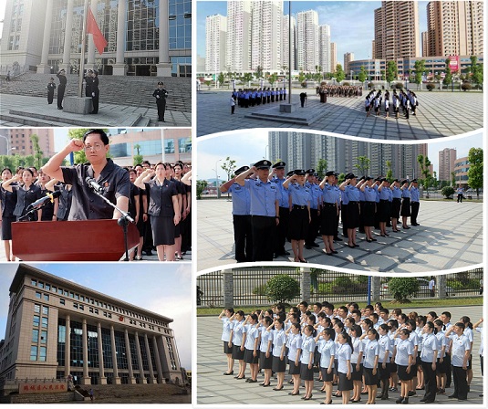 上午9时整,鹤城区法院升国旗仪式开始,5名英姿飒爽的国旗护卫队队员迈着矫健的步伐,护卫五星红旗走向升旗台。伴随着高昂雄壮的国歌奏响,鲜艳的五星红旗冉冉升起,全体干警肃穆而立,向国旗行注目礼, 以此表达对伟大祖国的无限忠诚和热爱之情。
