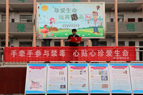 清风网讯(岳阳楼区岳城小学:黄胜)“万恶毒为首”。为进一步加强校园禁毒预防教育工作,增强师生抵制毒品的意识,提高自我保护能力,6月13日上午,枫桥湖街道办事处、枫桥湖司法所、枫桥湖派出所及甘塘坡社区深入岳城小学开展以“手牵手参与禁毒,心贴心珍爱生命”为主题禁毒宣传教育活动。