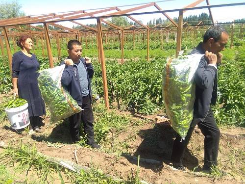 村民古丽吉米兰·巴吾东高兴地说:“我家以前常规种植玉米、小麦,每亩收入还达不到1000元,为提高我们的经济收入,在工作队和村委会的引导下,我今年种植了80平方米的小拱棚蔬菜,预计辣椒就能有1000元的收入,真的很感谢工作队引导我们脱贫致富”。