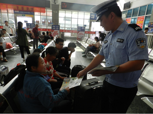 清风网邵阳讯(通讯员:刘丽容) 今年6月是全国第十八个“安全生产月”,为增强“安全生产月”宣传氛围,深入宣传道路交通安全法律法规,提高交通参与者的安全驾驶和文明交通素质,有效预防和减少重特大道路交通事故的发生。6月14日上午,武冈市公安局交警大队联合市交通局、运管所、湘运公司深入汽车北站以“防风险、除隐患、遏事故”为主题,开展“安全生产月”活动。