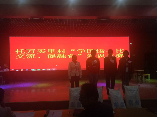 清风网讯(托万买里村:吐尔逊江·艾尔肯)5月21日下午,托万买里村组织开展以“学好普通话·共筑中国梦”为主题趣味国家通用语言知识竞赛活动,全村农牧群众观看了本次活动。