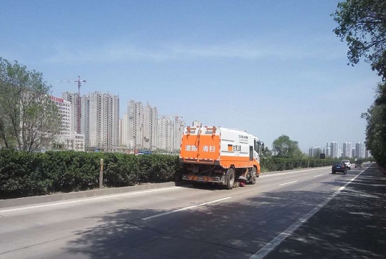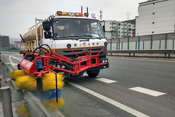 S16线天北高速公路路面清扫车清扫路面
