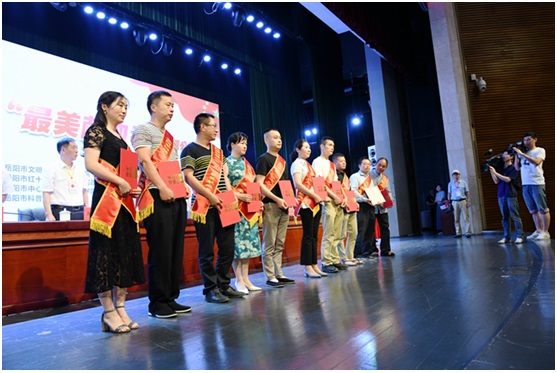 市委宣传部副部长、市文明办主任章宏平宣读了表彰决定,丰小玉、周保国等30名志愿者被评为岳阳“最美献血者”,秦国权、刘闯等22名志愿者被评为岳阳“最美献髓者”,汪泽文、王永林等20名志愿者被评为岳阳市无偿献血“最美志愿者”,龚成明、方海英等20名志愿者被评为岳阳市无偿献血“最美组织者”,中国石化巴陵石化公司、中国石化集团长岭炼化公司青年志愿者协会等40家单位被评为岳阳市无偿献血“最美公益团队”。