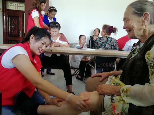 “老人家,您有关节炎,平时天气凉的时候,一定记得多加衣裤。”工作队员一边在旁边向专业人员学习着如何为老人按摩,一边还叮嘱老人们们要注意身体健康,让老人们觉得温暖如家人。