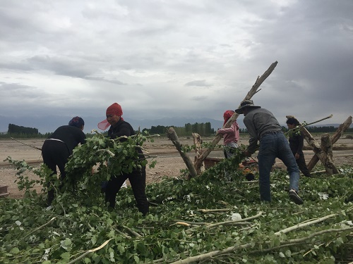 清风网讯(阿克苏地区“访惠聚”办公室:陈涛)盛夏来临,位于拜城县察尔齐镇木扎提河支流沿岸的村民都会提前在河的两岸扎起防洪坝,抵御融雪性洪水。今年和往常一样,红旗村3组的老老少少全员上阵,妇女们砍树枝、加固基础,年轻些的男人们捡石头、扎三脚架。大家齐心协力,保卫家园。