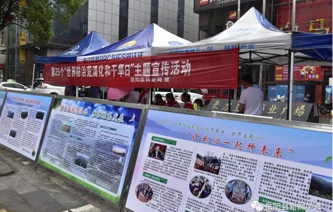 6.17是第25个“世界防治荒漠化和干旱日”,为践行生态优先、绿色发展理念,进一步提升全社会对荒漠化防治、防沙治沙的认识,动员广大公众积极参与到生态建设中来,6月17日,岳阳县林业局围绕“让我们一起种未来”、“防止土地荒漠化,推动绿色发展”等主题,结合岳阳县实际,开展了一场大规模防治荒漠化主题宣传活动。