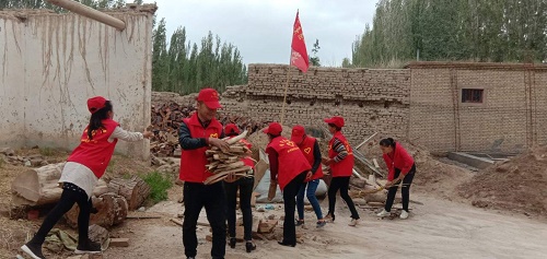 青年团员们来到了二组73岁重病卧床的老党员依马娜木.吾吉家,结合目前开展的农村人居环境整治活动,宣讲美化、优化人居环境,打造美丽庭院的重要性和必要性,帮助树立正确的“五观”、“四认同”,青年团员们帮助将散落在院中的木柴堆放整齐、打扫庭院卫生、擦窗户、收拾屋子等,村团支部书记古丽尼沙.提力瓦力地亲自为其43岁瘫痪在床的生活不能自理的脑瘫女儿洗头发、擦身子、剪指甲等,团青年们热火朝天地忙碌了一整天,傍晚才干完。